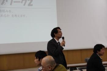 グループでテーマ毎に、「新しく始まったまちづくりの取組みをどのように発展させるとよいか、さらにどんな取組みをするとよいか」、「その取組みを、誰がどうやって進めるか」を話し合いました。その後、発表を行いました。