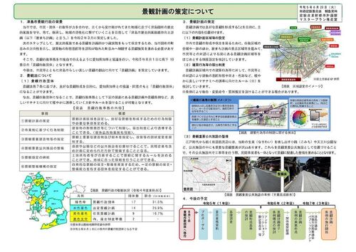 津島市は、建築物の形態意匠等を調和が取れた町並みにするための景観施策として、景観計画の策定を進めます。市民の皆様とともに「津島市らしい」美しい景観を創り出し、「住んでみたい、訪れてみたい、津島市」を目指してまいります。